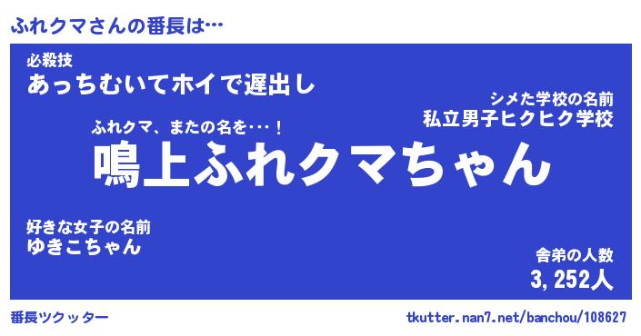 | 意味不明あだ名 | 『ペロリンふれクマ』『永久保存ふれクマ』 |