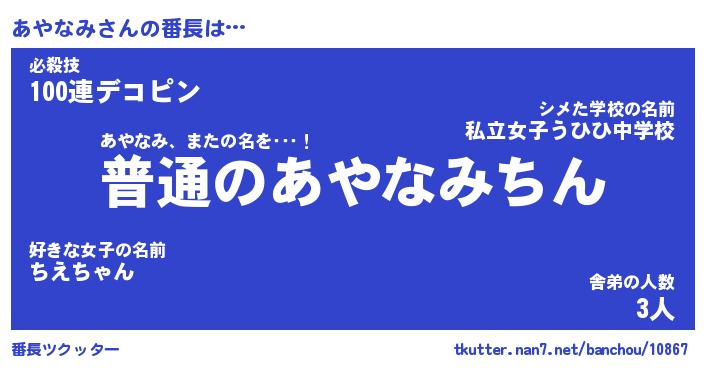 | ヘコむあだ名 | 『あやっふぃ~』『つくし』 |