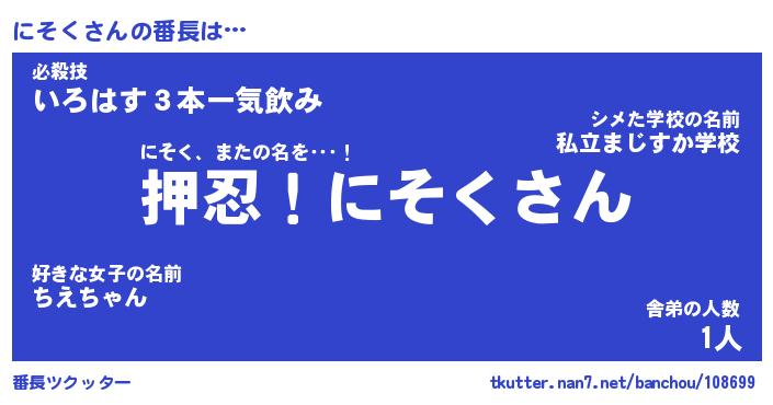 | ヒーロー風カッコイイあだ名 | 『スーパーニソク』『ウルトラにそくマン』 |