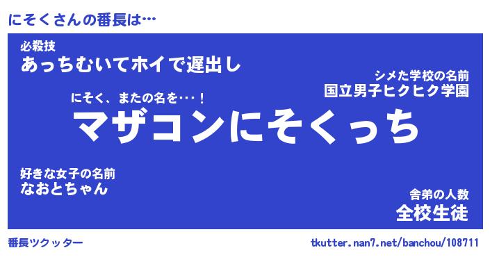 | ヒーロー風カッコイイあだ名 | 『スーパーニソク』『ウルトラにそくマン』 |