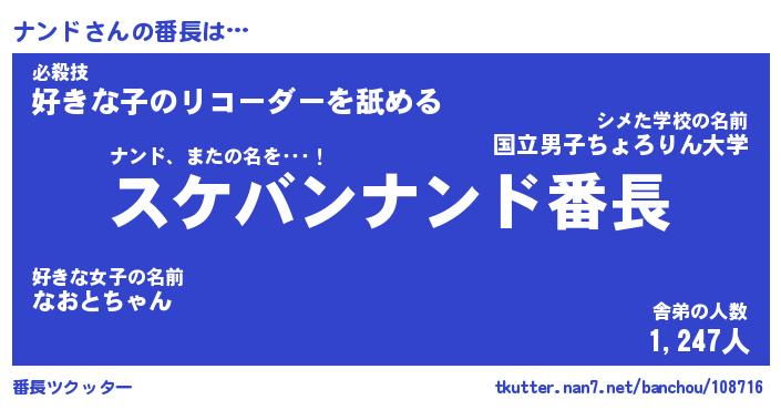 | ポケモン風あだ名 | 『ナンチュウ』『ナンドダネ』 |