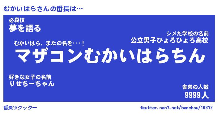 | ヒーロー風カッコイイあだ名 | 『スーパームカイハラ』『魔戒騎士ムカ』 |