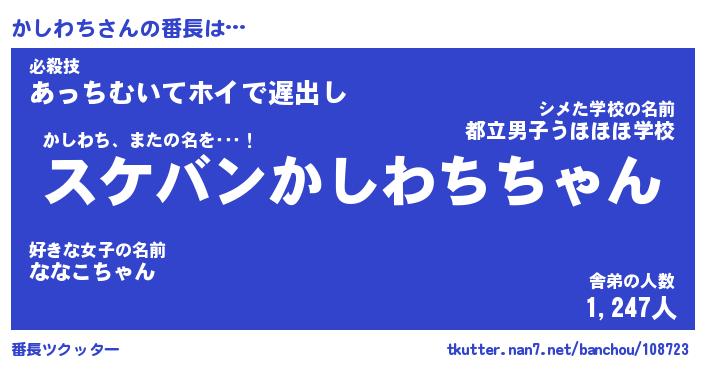 | 意味不明あだ名 | 『ペロリンかしわち』『永久保存かしわち』 |