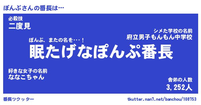 | 2回繰り返すあだ名 | 『ぽんぽん』『ぽぽんん』『ぬれぬれ』 |