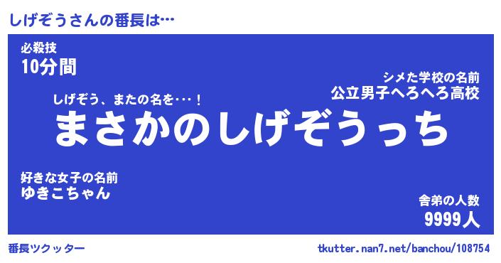| ヒーロー風カッコイイあだ名 | 『スーパーシゲゾウ』『天弓騎士シゲ』 |