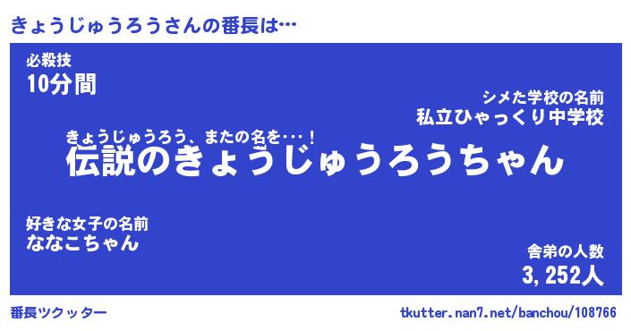 | 男性向けラノベタイトル風あだ名 | 『きょうじゅうろうの憂鬱』 |
