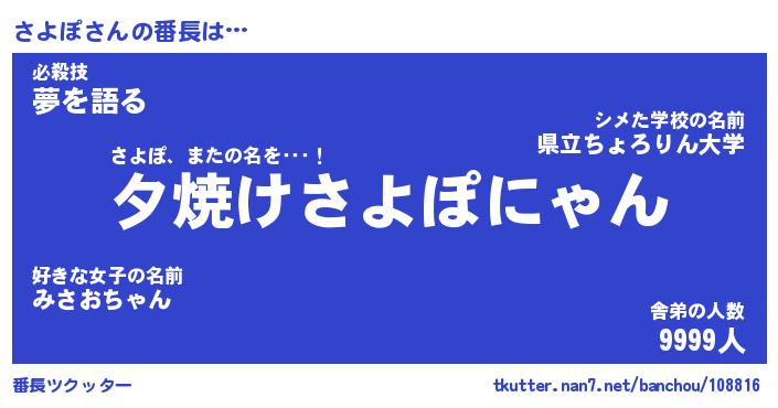 | ヒーロー風カッコイイあだ名 | 『スーパーサヨポ』『ウルトラさよぽマン』 |