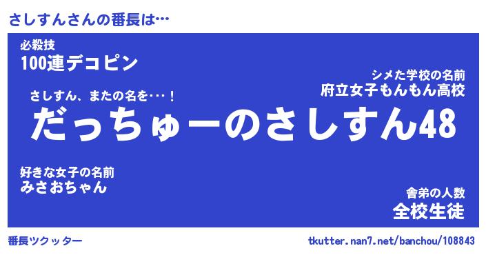 | 男性向けラノベタイトル風あだ名 | 『さしすんの憂鬱』 |