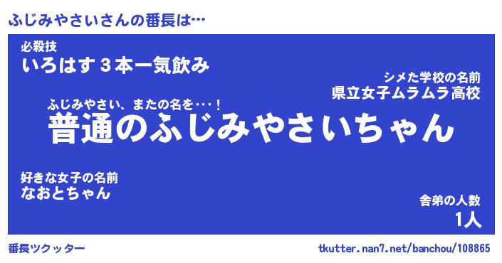 | ヒーロー風カッコイイあだ名 | 『スーパーフジミヤサイ』『黄金騎士フジ』 |