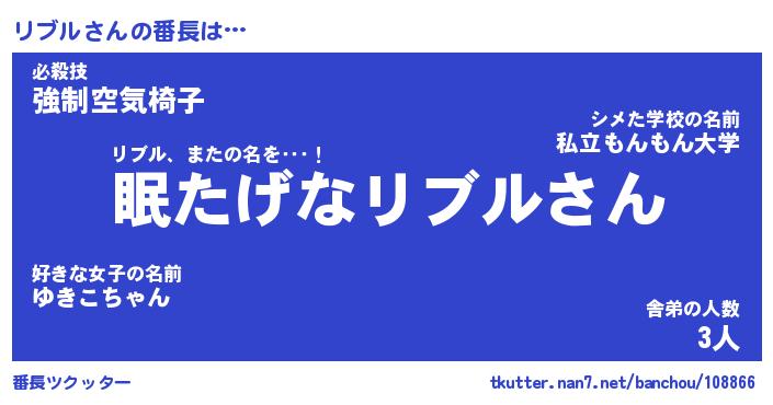 | 2回繰り返すあだ名 | 『リブリブ』『リリブブ』『いらいら』 |
