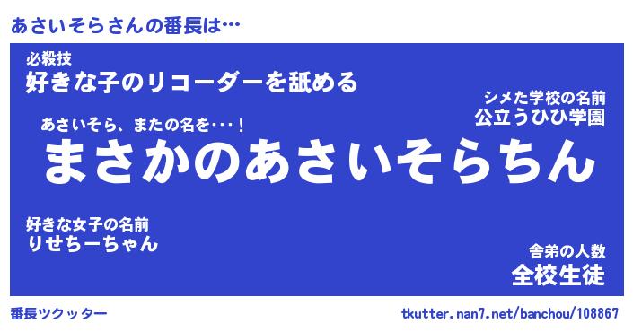 | ポケモン風あだ名 | 『アサチュウ』『アサイダネ』 |