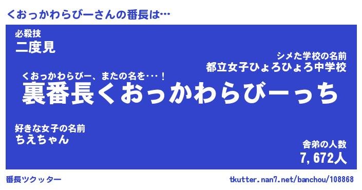 | 恥ずかしいあだ名 | 『プリティーくおっかわらびー』 |