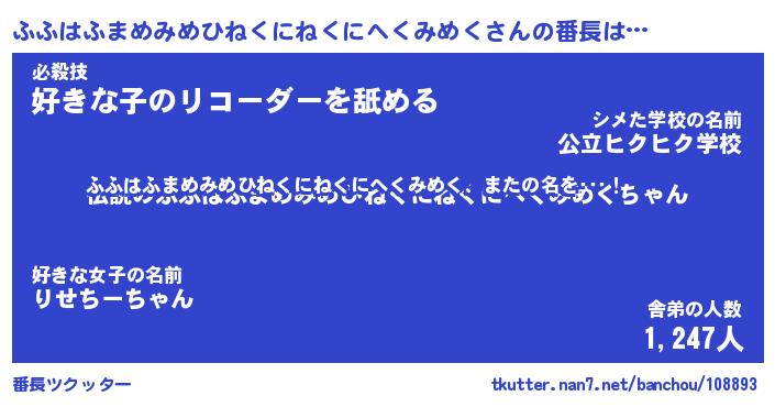 | ヒーロー風カッコイイあだ名 | 『スーパーフフハフマメミメヒネクニネクニヘクミメク』 |