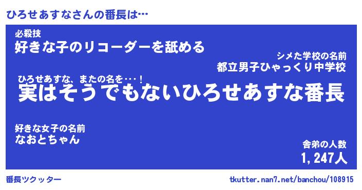 | ヒーロー風カッコイイあだ名 | 『スーパーヒロセアスナ』『銀牙騎士ヒロ』 |