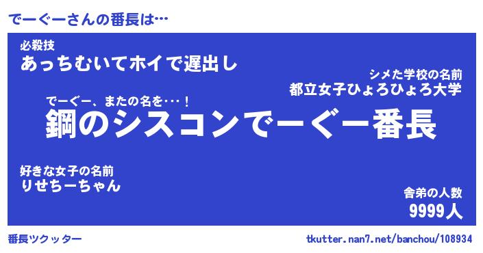 | ヒーロー風カッコイイあだ名 | 『スーパーデーグー』『天弓騎士デー』 |