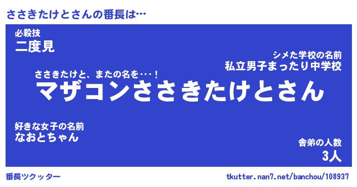 | 恥ずかしいあだ名 | 『プリティーささきたけと』『ささっちょ』 |