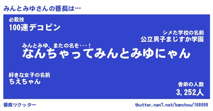 | 肩書あだ名 | 『みんとみゆ店長』『みんとみゆ大統領』 |