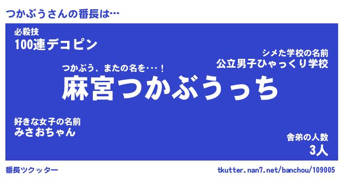 | 意味不明あだ名 | 『ペロリンつかぶう』『永久保存つかぶう』 |