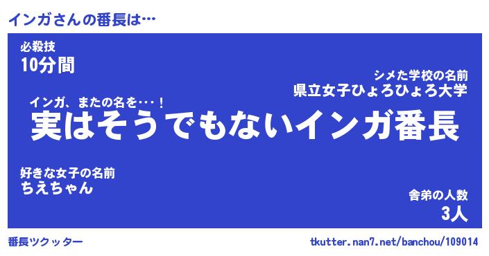 | 肩書あだ名 | 『インガ店長』『インガ国家主席』 |