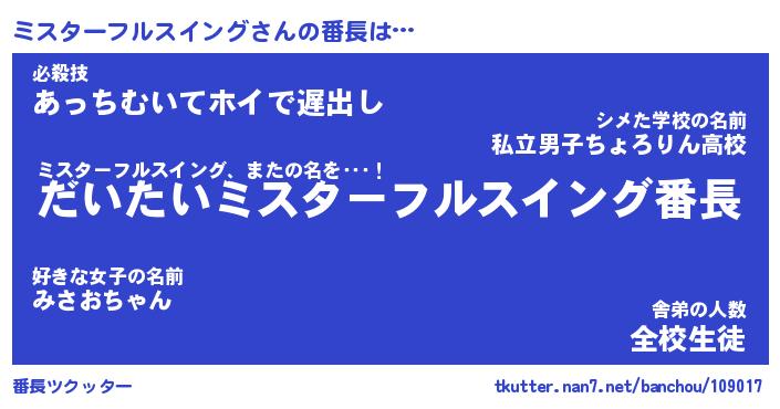 | ヒーロー風カッコイイあだ名 | 『スーパーミスターフルスイング』 |