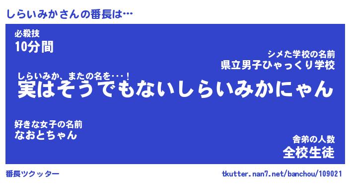 | 意味不明あだ名 | 『ペロリンしらいみか』 |