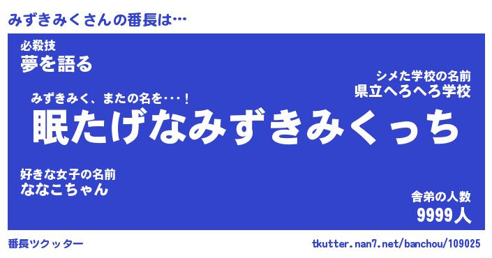 | ファンタジー風あだ名 | 『ミズフェル』『エターナルミズキミクー』 |