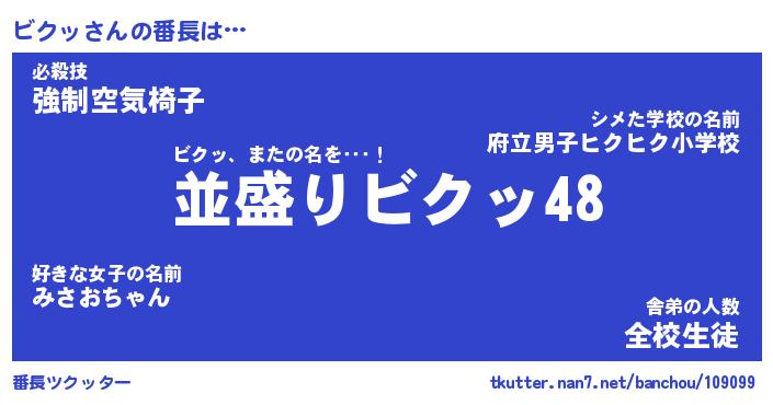 | ヒーロー風カッコイイあだ名 | 『スーパービクッ』『ウルトラビクッマン』 |