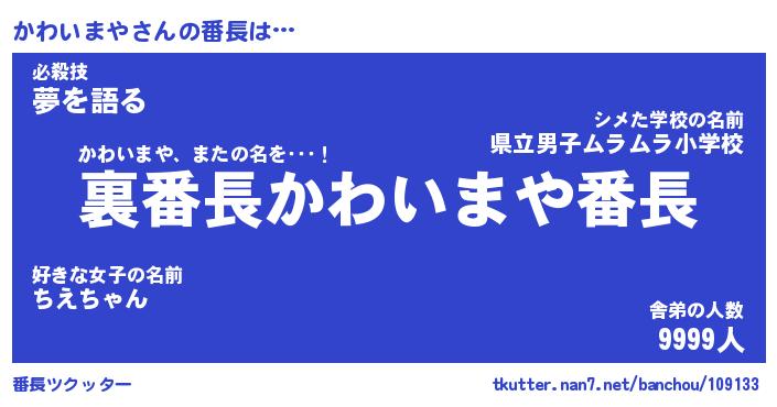 | 肩書あだ名 | 『かわいまや社長』『かわいまや国家主席』 |