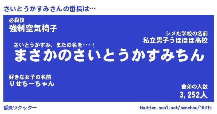 | 伝説のあだ名 | 『伝説のスナイパーさいとうかすみ』 |