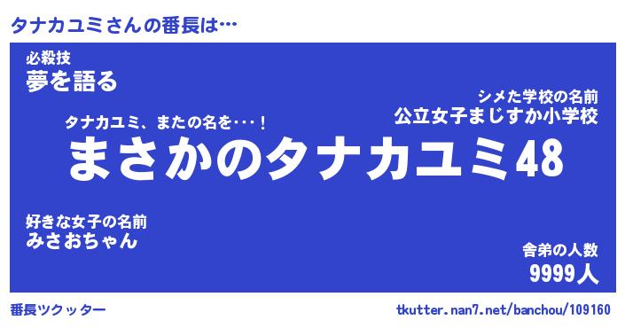| 肩書あだ名 | 『タナカユミ御曹司』『タナカユミ大統領』 |