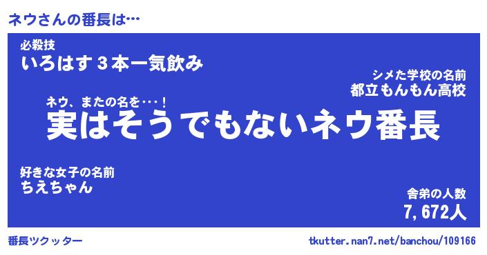 | ヘコむあだ名 | 『ネウっふぃ~』『なまこ酢』 |