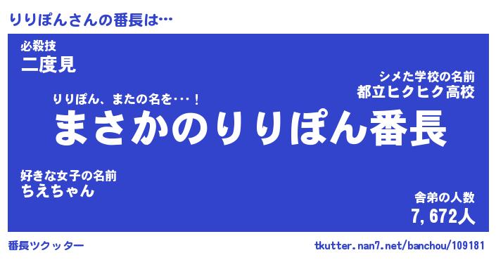 | 欧米人風あだ名 | 『マイケルりりぽん』『ウサインりりぽん』 |