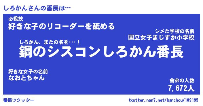 | 意味不明あだ名 | 『ペロリンしろかん』『永久保存しろかん』 |