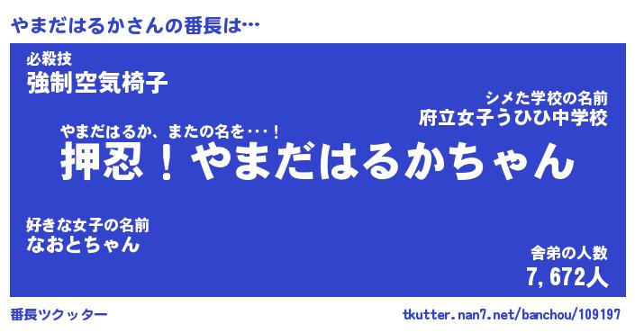 | ヒーロー風カッコイイあだ名 | 『スーパーヤマダハルカ』『銀牙騎士ヤマ』 |