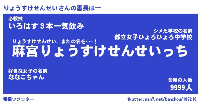 | 伝説のあだ名 | 『不死鳥のスナイパーりょうすけせんせい』 |