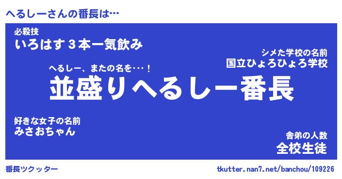 | 意味不明あだ名 | 『ペロリンへるしー』『永久保存へるしー』 |