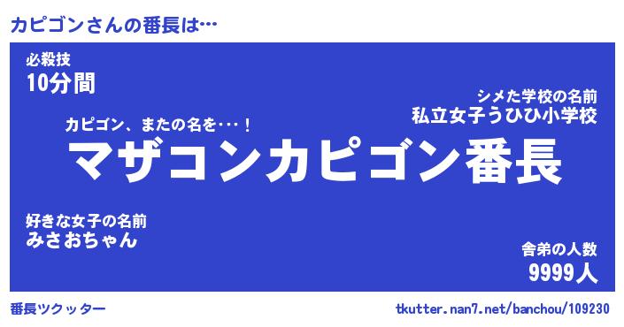 | ヒーロー風カッコイイあだ名 | 『スーパーカピゴン』『天弓騎士カピ』 |