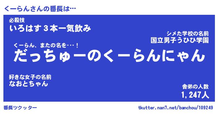 | 意味不明あだ名 | 『ペロリンくーらん』『永久保存くーらん』 |