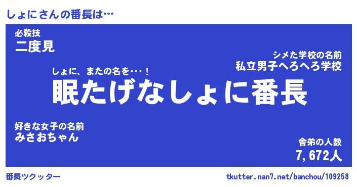 | 2回繰り返すあだ名 | 『しょしょ』『ししょょ』『ぬるぬる』 |