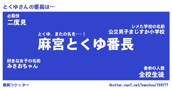 | ファンタジー風あだ名 | 『トクフェル』『エターナルトクユー』 |