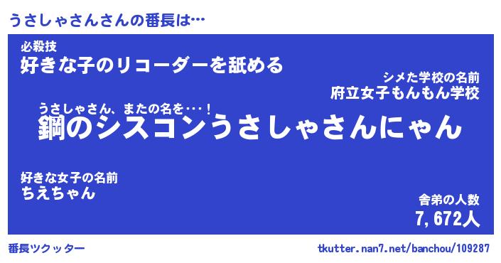 | ポケモン風あだ名 | 『ウサチュウ』『ウサシダネ』 |
