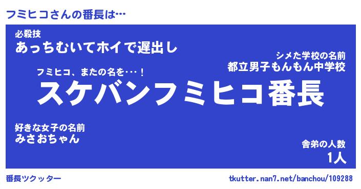 | ピコ太郎風あだ名 | 『フコ三郎』『ピフ五郎』『フミ八郎』 |