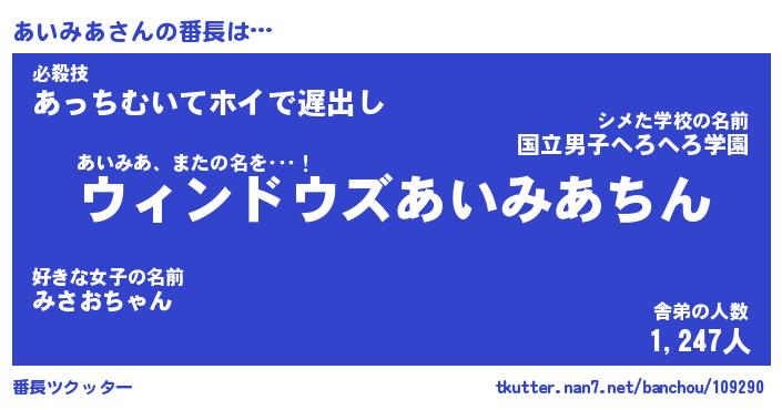 | 意味不明あだ名 | 『ペロリンあいみあ』『永久保存あいみあ』 |