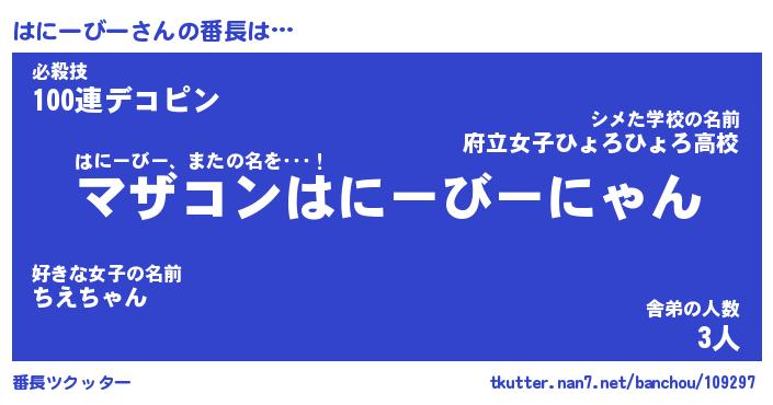 | ヘコむあだ名 | 『はにっふぃ~』『つくし』 |