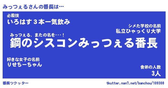 | 伝説のあだ名 | 『封印されしスナイパーみっつぇる』 |