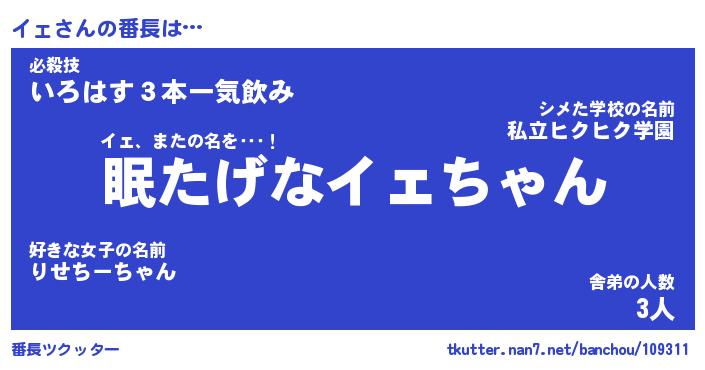 | ポケモン風あだ名 | 『イェチュウ』『イェダネ』『ヒイェ』 |