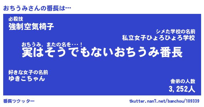 | 肩書あだ名 | 『おちうみCEO』『おちうみ総理大臣』 |