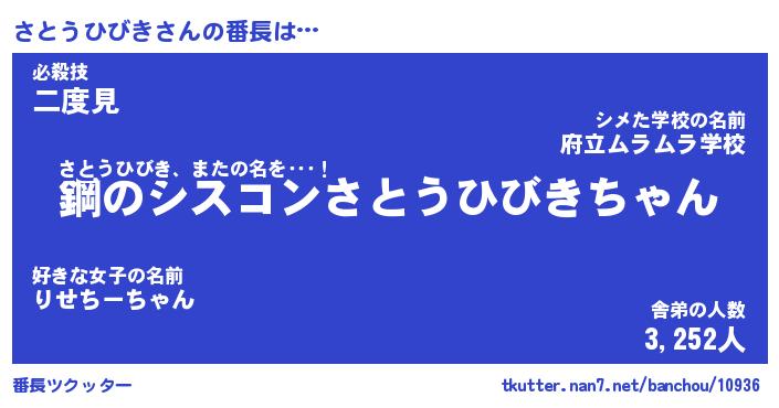 | ヒーロー風カッコイイあだ名 | 『スーパーサトウヒビキ』『幻影騎士サト』 |