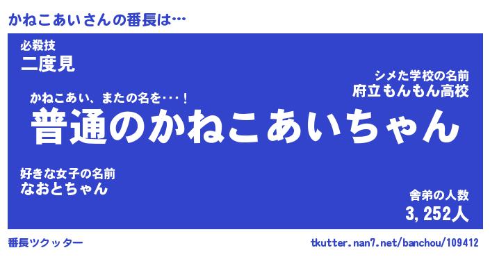 | 2回繰り返すあだ名 | 『かねかね』『かかねね』『ぬぷぬぷ』 |