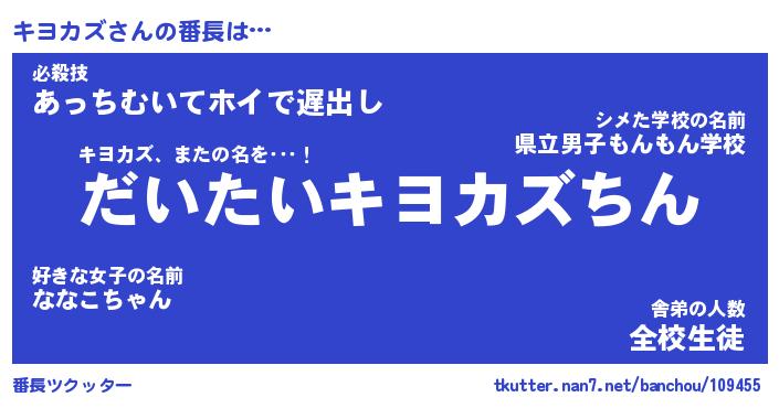 | 意味不明あだ名 | 『ペロリンキヨカズ』『永久保存キヨカズ』 |